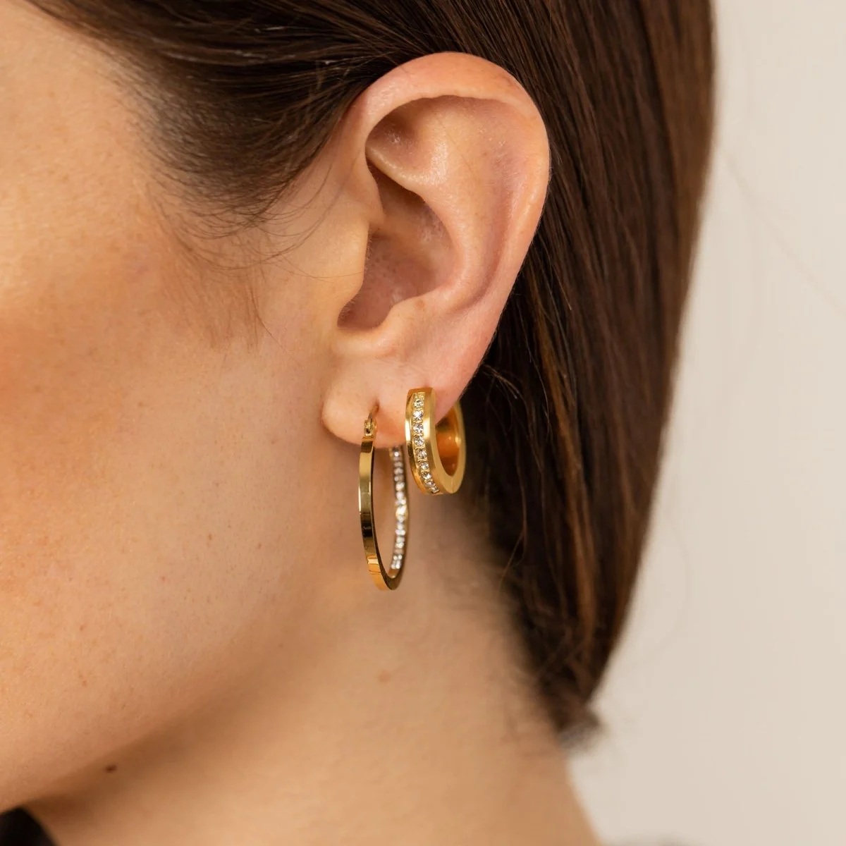 Gli orecchini Inner Shine offrono una delicata lucentezza: orecchini a cerchio stretti con piccole pietre preziose incastonate all'interno.